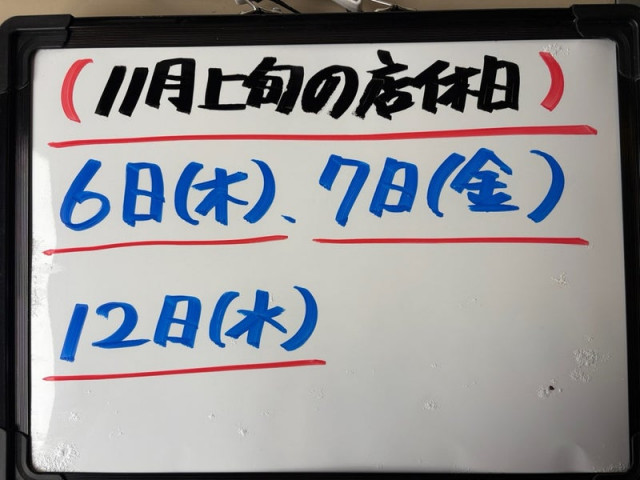 11月上旬の店休日等のお知らせです。